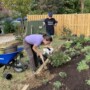 GGC, SFNC staff, and community volunteers united again in October 2021 to help the non-profit organization reclaim and beautify their grounds post-construction with a new garden designed by GGC. Heavy equipment left behind compact, hard soil but intrepid gardeners swung pick axes and installed a lovely variety of native plants and shrubs, including serviceberry trees, Allegheny Viburnum, Coreopsis, Inkberry Holly, Amsonia Blue Ice, and Heavy Metal Switchgrass.